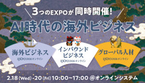 この2月、海外ビジネスに関するあらゆる情報・サービスが集まる総合展「海外ビジネスEXPO2026オンライン」が開催されます。弊社は本EXPOに出展するとともに、初の試みとなるオンラインセミナーを開催いたします。 セミナー […]